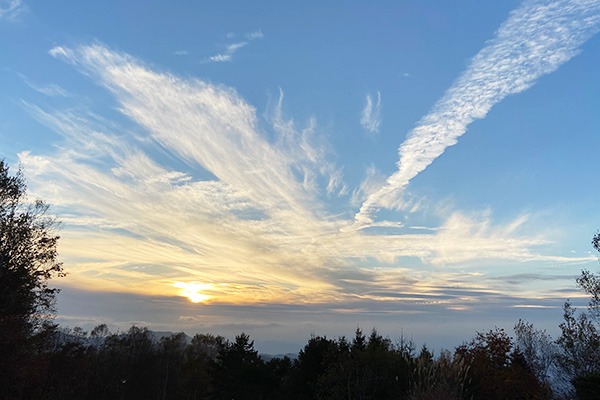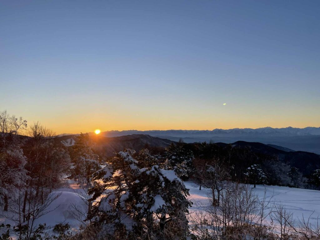 山から一望できる朝日を浴びる